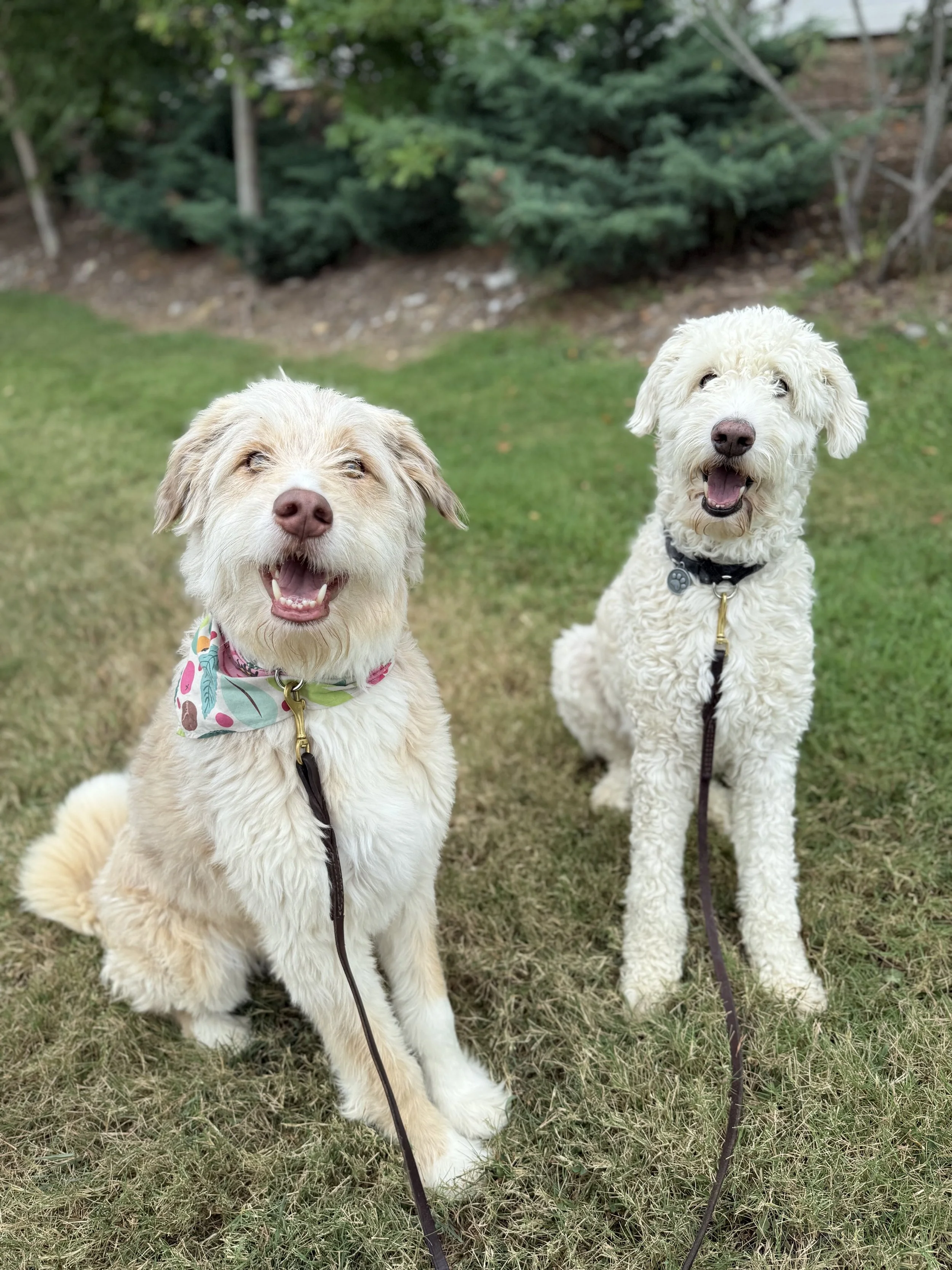 This a Foundations program meaning our goals are to build confident, well socialized puppies, with good manners that love to learn. With these pups we are working on luring new positions (sit, down and heel), building confidence walking on leash, desensitizing basic handling (nails & brushing), socializing with other dogs and continuing the crate and house training you are doing at home! There is no emphasis on loose leash walking. We will send you material about common puppy concerns and can trouble shoot problems at home during our mini weekly sessions. We strongly recommend puppies attend training in a back clip harness.